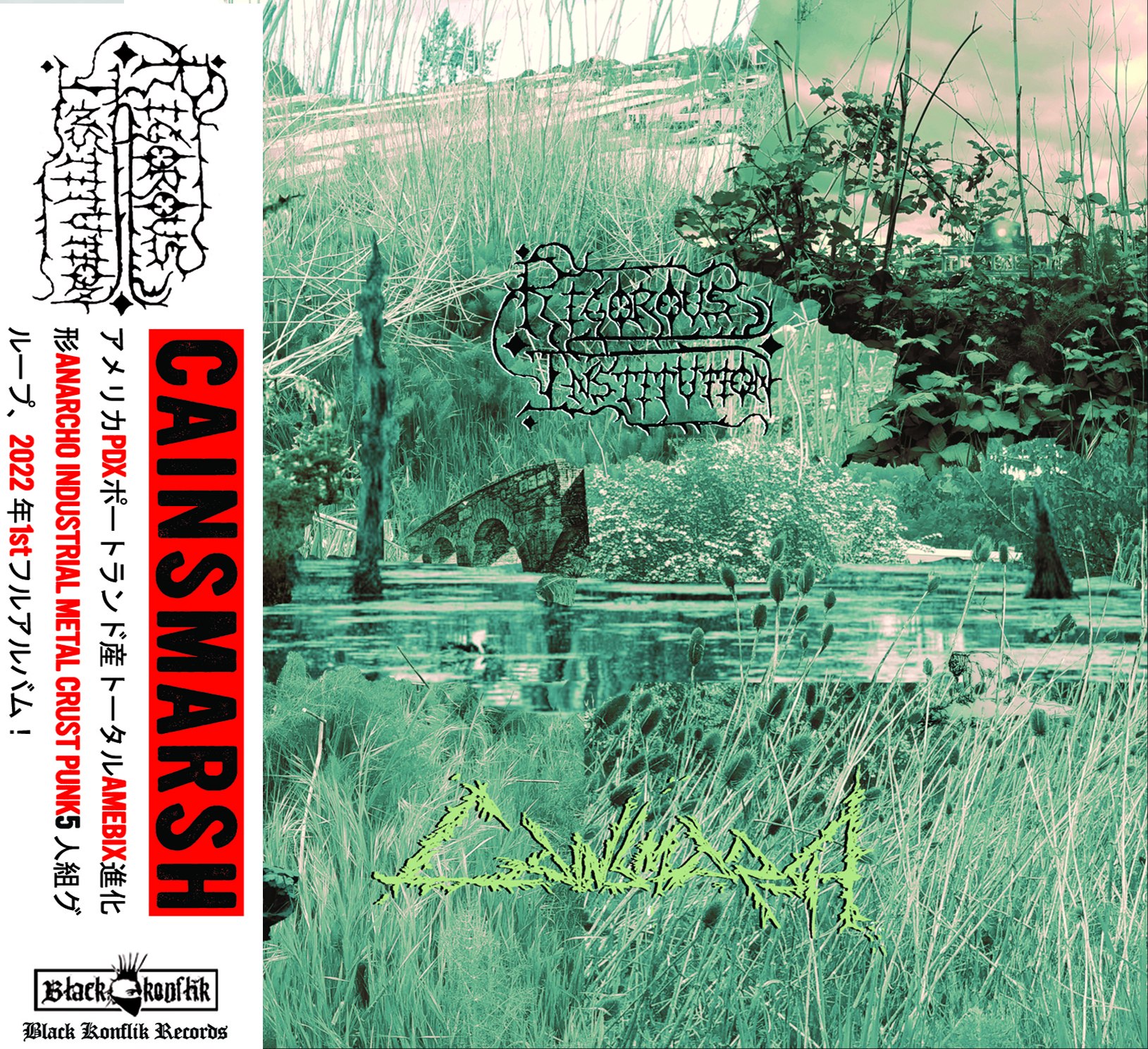 After three highly praised 7” eps, RIGOROUS INSTITUTION rises from the shadowy dripping streets of Portland, OR to deliver us their 1st full length album. Full of scathing vocals with smart, bleak lyrics (that border on poetry at times), axe grinding riffs, driving, dirty bass lines, hypnotic percussion, atmospheric synthesizer and a sense of droning paranoia scattered throughout its entirety. Yes, this is what one could call crust, but it feels too easy to use that word. These weirdos veer into seldom ventured territories that go from ripping to horrific soundscapes that make one’s skin crawl as much as their fists pump. Picture John Carpenter joining forces with AMEBIX in 1982 and it will give you an idea of what this epic CD will bring. This might just be the perfect soundtrack for the current state of the world.