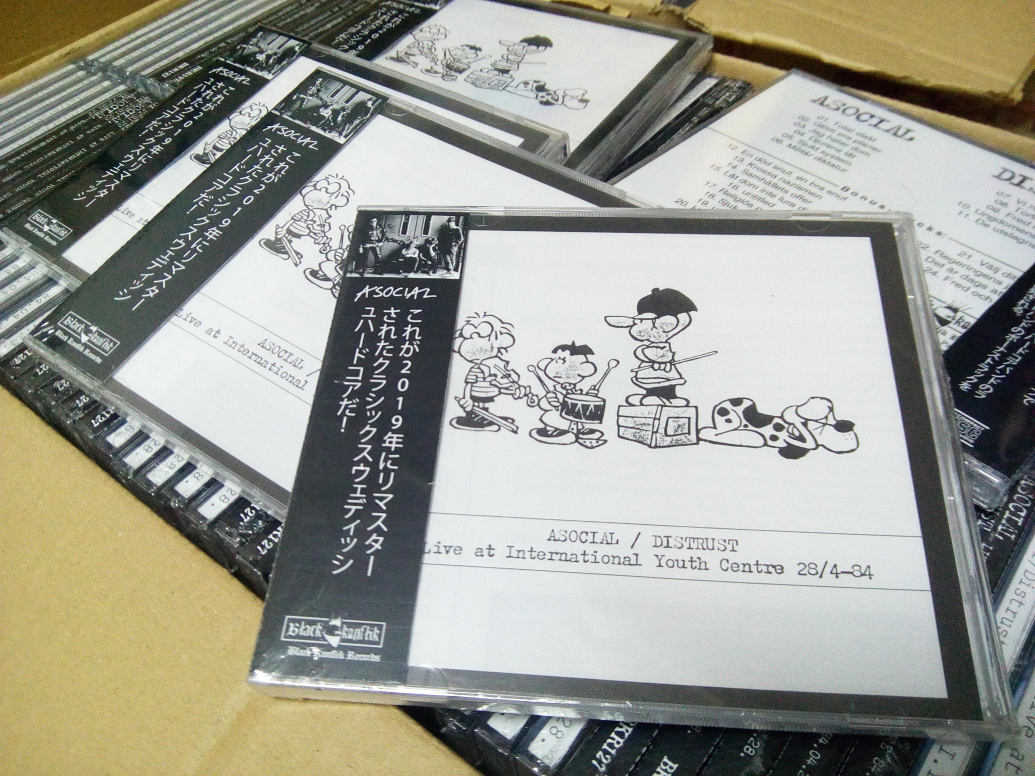 Live split between 80's Swedish Hardcore ASOCIAL and DISTRUST in 1984 that recorded at I.Y.C. This CD contain 16 page booklet with lyrics, photo and note liner by the band member and also a bonus tracks. Original release on cassette version by Dis-Cassette label in 1984.