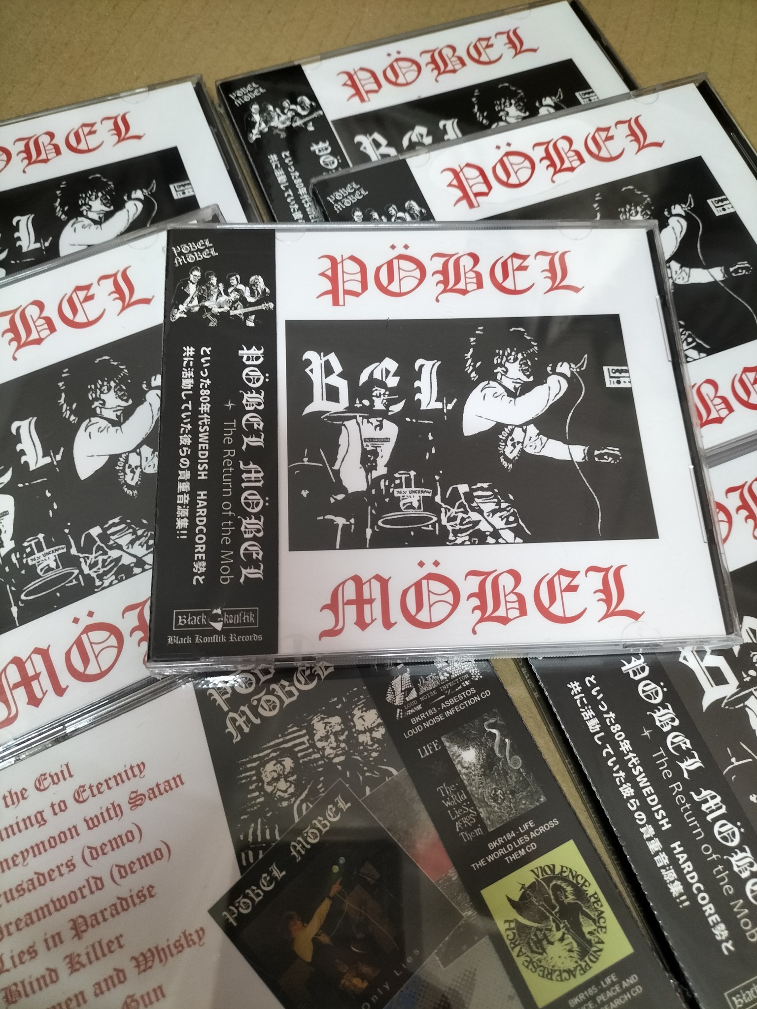 Pöbel Möbel is a Hardcore and obsecure Metal punk that started in January 1983 in Jönköping. The first set was Peter, Fido, Svenne and Lagge. Recorded 1984 a maxi-EP together with Anti Hund Mina that also shared a band member (Peter). Lagge left the band in 1985 and was replaced by Danne. 1986 Puto started playing with the band and made the sound heavier with double guitars. 1988 they recorded their last record, a maxi-EP with street punk and soccer choirs. Touring in Sweden and Norway 1985 with Upright Citizens and Asta Kask. Pöbel Möbel made their last tour to Germany 1988.
