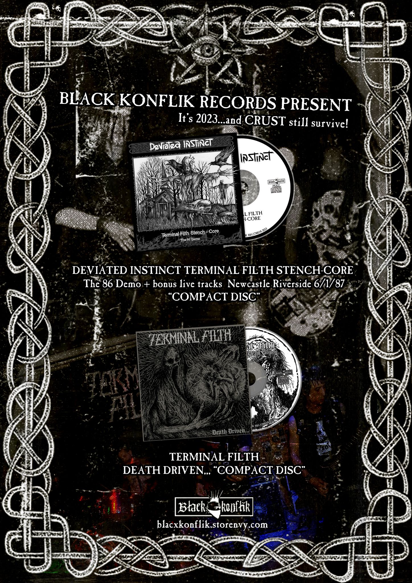 The obvious clue to Berlin band Terminal Filth’s area of expertise is in their Deviated Instinct-referencing moniker. Unsurprisingly, Terminal Filth’s barrelling full-length debut, Death Driven, also referenced the enduring influence of groups like Antisect, Axegrinder, and Extinction Of Mankind. Terminal Filth’s anvil-heavy crust oozed apocalyptic doom as reeking and hulking dirges mixed with more sharply pointed attacks. Death Driven provided the best of both worlds; the primordial darkness of old and modern-day crust war rage. Perfect for fresh-faced and ancient crusties to sink their rotten teeth into.